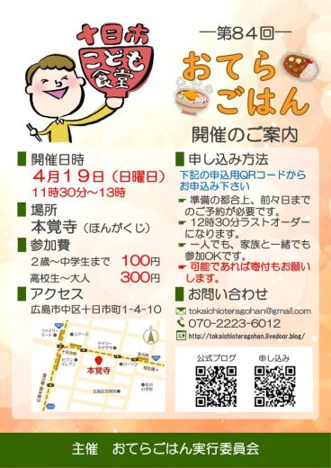 第84回十日市こども食堂おてらごはんのご案内(4月19日・残り10名です)