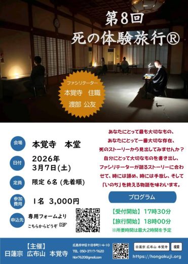 第8回 死の体験旅行Ⓡ in 本覚寺のご案内(3月7日・残り4名です)