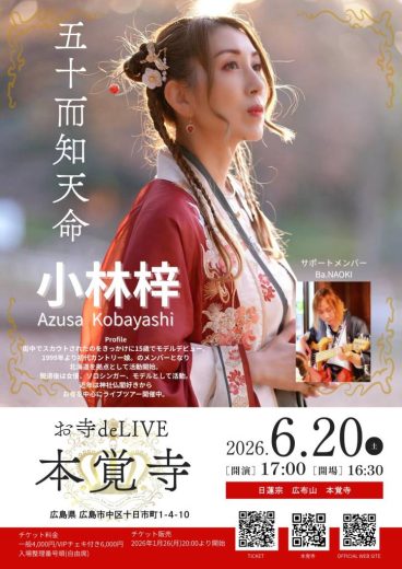 小林梓さん お寺de LIVE TOUR 〜五十而知天命〜 広島公演のご案内(6月20日です)