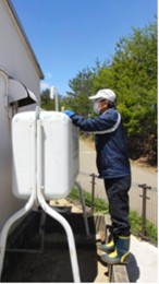 本年3月に全国児童養護施設協議会「東日本大震災被災地支援金」により表面汚染計測器を購入でき、園内を測定したところ、幼児棟に隣接する冬季用の灯油タンクを囲うコンクリート基礎部分で、計数率2,000cpm(測定機器:表面汚染計測器RadEye B20:α・β・γ線を測定)前後の値を示しました。空間線量率は毎時0.3μSv(シンチレーションサーベイメータRadEye PDRS:γ線を測定,)前後であり、周辺の線量率と大差無いことから、表面汚染計測器で検知可能なβ線を放出する放射性物質が多いことが考えられます。施設内の同様の設備が8つあり、同様に表面汚染数値が高いこともあり、作り替える必要があると望むものの、特に幼児棟の園庭部分の2つについては、緊急に対処する必要があります。