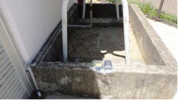このガイドラインを参考に福島市内にある児童養護施設B園を測定したところ、幼児棟に隣接する園庭内に、空間線量(γ線)に比べて表面汚染計による線量が異常に高いところが見つかりました。これは事故後から累積した放射性物質が、幼児の背の高さほどの防油堤コンクリートの割れ目に入り込んでいるため表面の除染では除去できないことが、コンサルテーションを受けてわかったので、至急対応する必要があり、取り壊し改修工事のご支援を頂いたものです