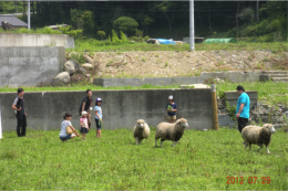 1.浸水地を緑の放牧地に転換整備し、めん羊を放牧して浸水地域の景観を維持発展させる事業