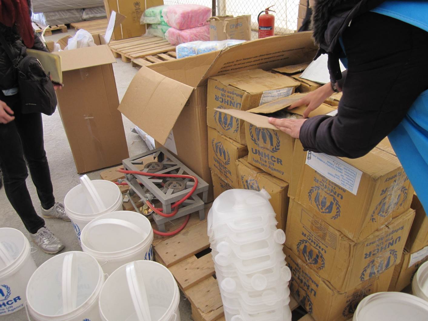 ・緊急支援パッケージの支給(毛布、調理器具、ビニールシート、水汲み容器、マットレス等)