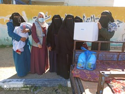 支援品を配布したときの様子。女性たちからは、「支援品は、私たちの生活に変化をもたらしてくれました。」、「ご支援は、私に希望とやる気を与えてくれました。」などのメッセージが届きました。
