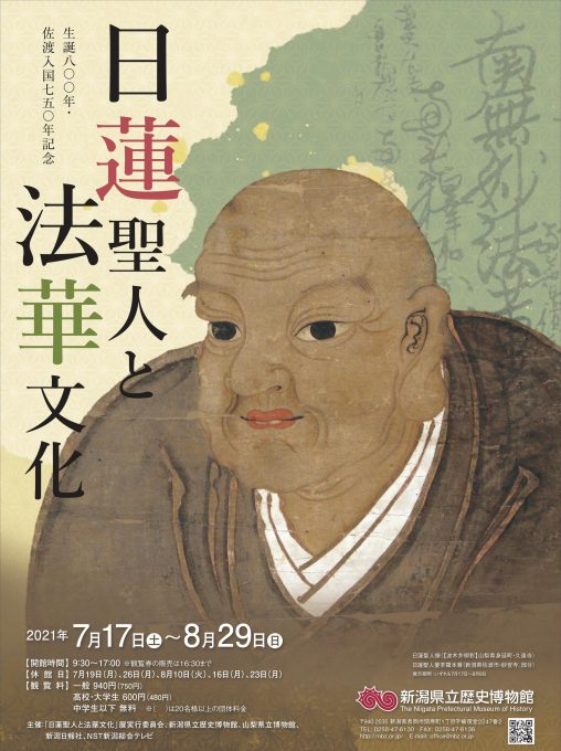 令和3年7月17日(土)から8月29日(日)まで新潟県立歴史博物館にて、生誕800年・佐渡入国750年記念「日蓮聖人と法華文化」展が開催されます。