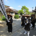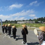東日本大震災を風化させないための活動として、慰霊、復興祈願、唱題行脚及び募金活動を行いました。今回は石巻市日蓮宗久円寺さまを起点とし、被災地域を約5km(約2時間)の行程を唱題行脚しました。