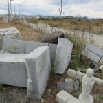 仙台東部道路を挟んで景色が一変しました。以前、「津波は道路の盛り土で勢いが止まった」と聞いたことがありましたが、確かに海に向かって荒涼とした感じを受けました。途中、大規模移転地の工事の区画に入ると、多くの工事関係車両が行き交っています。