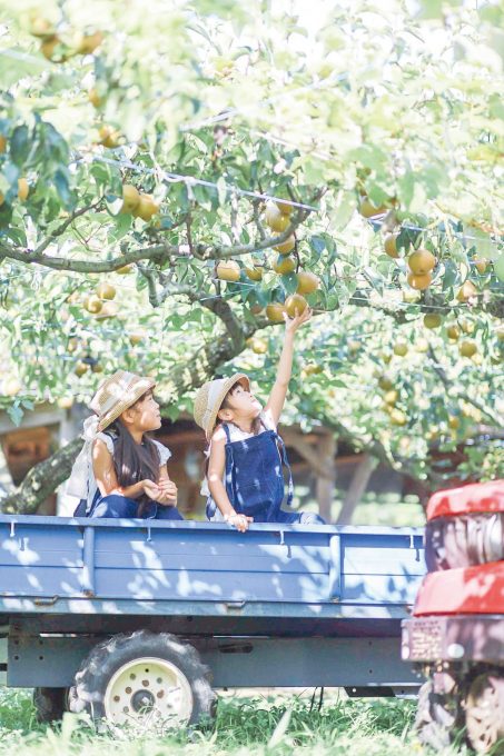 「命をいただく」というと動物を思い浮かべがちですが、果物だって立派な命。そんなことを再認識させてくれた1枚です。梨農家の娘さんかお孫さん、あるいは農園に梨狩りに来たのでしょうか。木漏れ日と明るめの露出が、写真に優しさを生み出しています。農作業の写真はどうしても緑が強くなって色彩表現が難しいのですが、トラックの荷台と姉妹が着ているツナギの青が効いています。