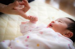 パパが指を握ってもらおうと差し出した手を子どもは快く握り返してくれました。子どもの表情がほほえましくパパは大喜びでした。