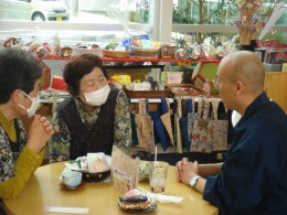 以前、宗務院で一度だけ傾聴活動の研修を受けたが、実際の傾聴活動は初めてなので、務まるか少し不安があった。しかし、地元NPOの女性スタッフの方も数名おられ、和やかな雰囲気のなか茶話会の形でしたので、相手の方も親しくお話をして頂けたので助かりました。話される内容は相手により異なりますが、震災後の困難な避難生活のこと、漸く避難指示が解除されても長期不在で自宅は荒れ果て修繕に苦労されたこと、更にこの小高区を離れ戻らない方も多く、これからの生活に先が見えない不安など、様々なことを溢れるように話されました。