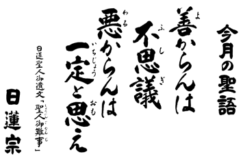 掲出前文に「彼等には、ただ一円に思い切れ」とある。日蓮聖人は断固たる決断を要請されたのであった。更に続く「ひだるしと思わば餓鬼道を教えよ。寒しといわば八寒地獄を教えよ。恐ろしといわば鷹にあえる雉、猫にあえる鼠を他人とおもう事なかれ。」と。