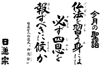 仏教者の歩むべき大道に「四恩」への報謝がある。「四恩」には衆生の恩、国王の恩がある。「伊豆法難」は、感恩報謝の思いを深めさせ、報恩の実践、「報恩行」の自己貫徹日蓮聖人の思索の中に深々と抱懐させたのである。『四恩鈔』は配所伊豆における著作であった。