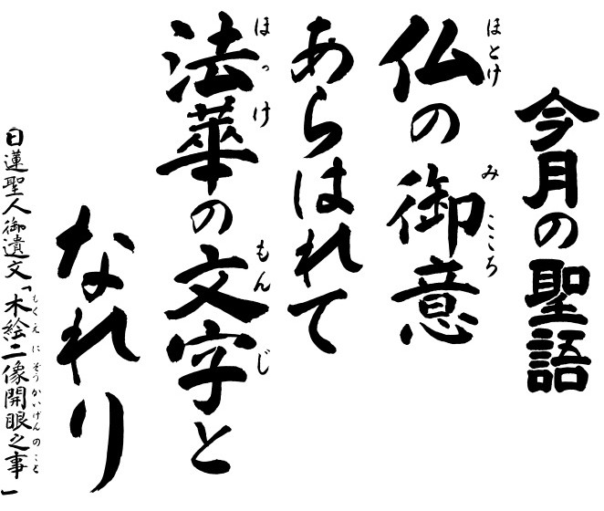 法華経も同じように一番と説きますが、他の経典と大きく異なっているのは、法華経の一文字一文字そのものが釈尊だと言うことです。それは法華経に書いたり、作ることができない釈尊の心が備わっているからなのです。だからこそ聖人は「法華経の一々の文字は、三十二相を備えた仏陀なり」と何度も示され、法華経は釈尊そのものであると説かれたのです。